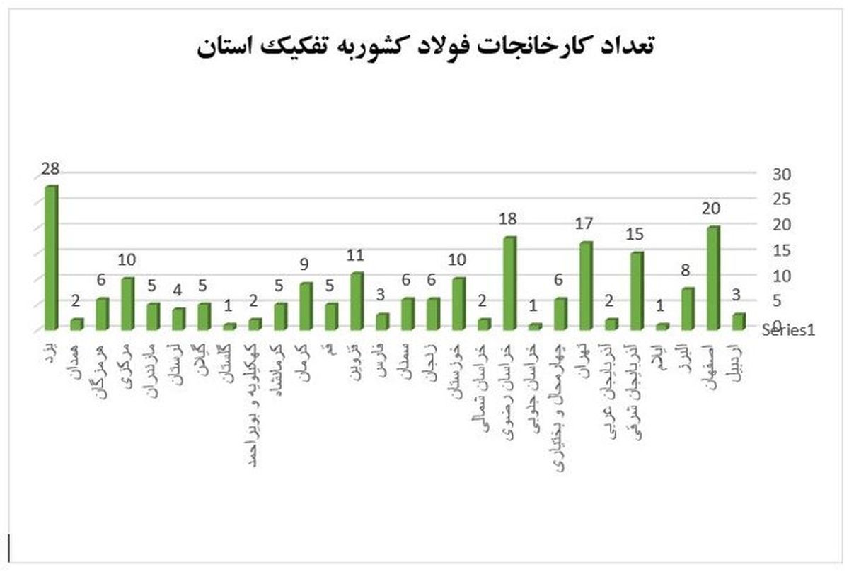 بر اساس آمار دقیق «انجمن تولید کنندگان فولاد ایران»، تعداد کل کارخانجات تولید کننده فعال فولاد و آهن در کشور ۲۱۲ شرکت است. از این تعداد، فقط ۲۸ کارخانه در استان «یزد»، قرار دارند که بالاترین میزان تمرکز استانی صنایع فولاد و ذوبآهن در کشور است. بعد از یزد، استان «اصفهان» با جای دادن ۲۰ کارخانه فولاد و ذوبآهن، در جایگاه دوم استقرار این صنایع در کشور است.