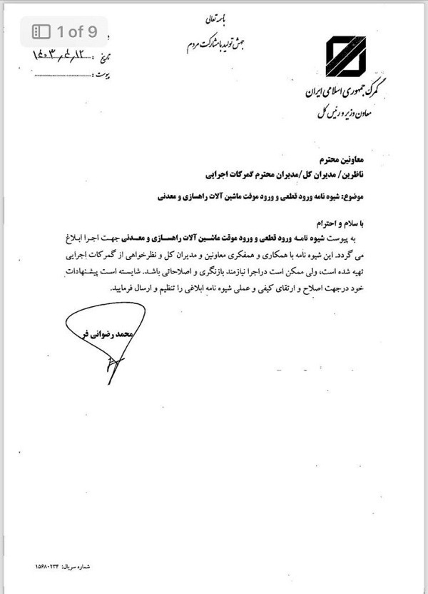 به گزارش پایگاه خبری معدن نامه، رییس گمرک ایران در بخشنامه ای خطاب به مدیران گمرکات اجرایی تصریح کرده است: شیوه نامه ورود قطعی و ورود ماشینآلات راهسازی و معدنی جهت اجرا ابلاغ می شود.