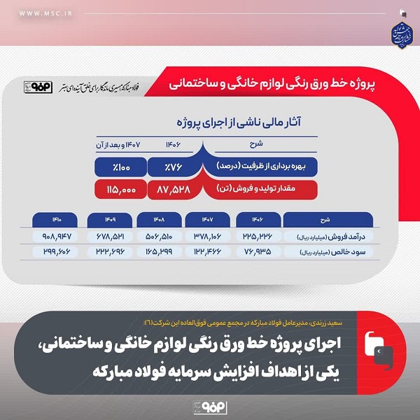 اجرای پروژه خط ورق رنگی لوازم خانگی و ساختمانی، یکی از اهداف افزایش سرمایه فولاد مبارکه