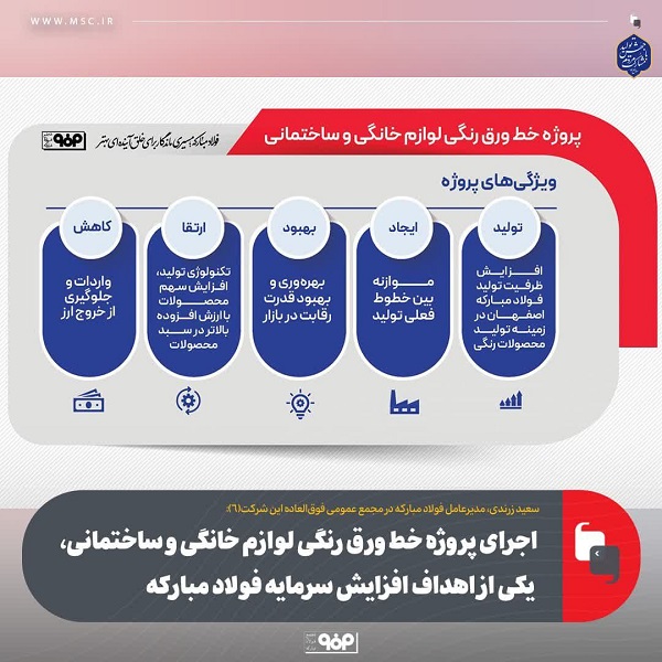 اجرای پروژه خط ورق رنگی لوازم خانگی و ساختمانی، یکی از اهداف افزایش سرمایه فولاد مبارکه