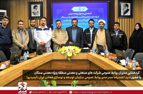 ظهر روز دوشنبه هشتم تیرماه؛ گردهمایی مدیران روابط عمومی شرکت های صنعتی و معدنی منطقه ویژه معدنی سنگان با حضور سید احمدرضا صدر مدیر روابط عمومی سازمان توسعه و نوسازی معادن ایران (ایمیدرو) به میزبانی شرکت اپال پارسیان سنگان برگزار شد.