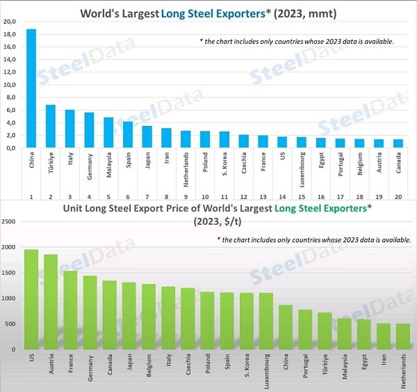 استیل دیتا فهرست بزرگترین صادرکننده محصولات طویل فولادی در سال ۲۰۲۳ را منتشر کرد. بر اساس این گزارش ایران از نظر حجم هشتمین صادرکننده بزرگ محصولات طویل فولادی بود ولی از نظر قیمت محصولات در رتبه نوزدهم قرار میگیرد.