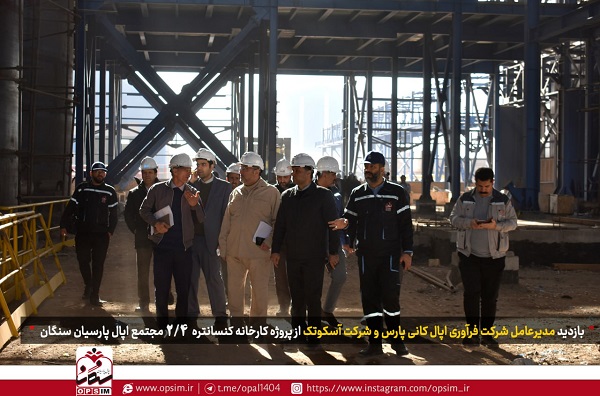 بازدید مدیرعامل شرکت فرآوری اپال کانی پارس و شرکت آسکوتک از پروژه کارخانه کنسانتره ۲.۴ و اعلام پیشرفت ۷۰ درصدی این پروژه