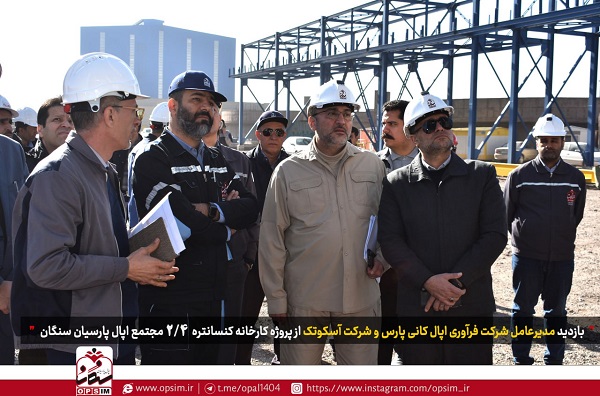 بازدید مدیرعامل شرکت فرآوری اپال کانی پارس و شرکت آسکوتک از پروژه کارخانه کنسانتره ۲.۴ و اعلام پیشرفت ۷۰ درصدی این پروژه