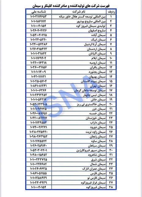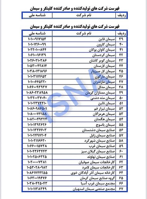 ۶۷ شرکت تولیدکننده و صادرکننده سیمان و کلینکر خاکستری که اسامی آنها در فهرست پیوست درج شده، تا تاریخ ۱۴۰۴/۰۷/۱۵ مجازند بدون ارائه گواهی خرید از رینگ صادراتی بورس کالا به صادرات اقدام کنند.