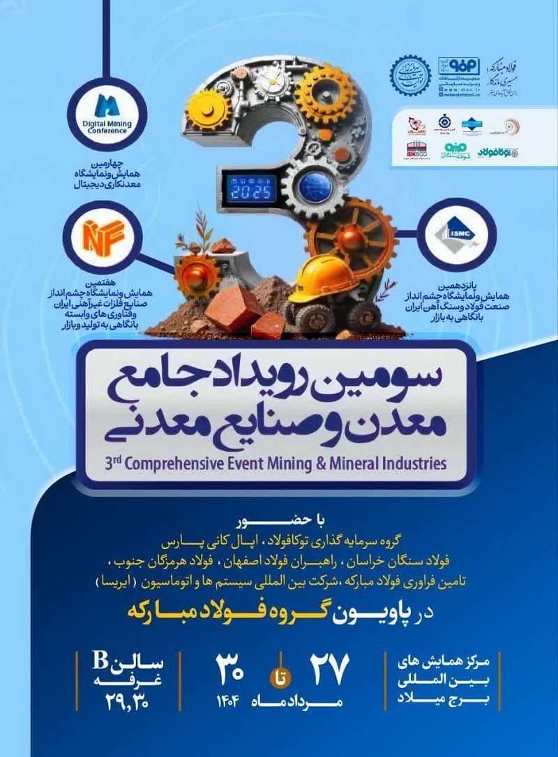 پانزدهمین همایش و نمایشگاه چشم انداز صنعت فولاد و سنگ آهن ایران با نگاهی به بازار ذیل سومین رویداد جامع معدن و صنایع معدنی، از ۲۷ لغایت ۳۰ مردادماه ۱۴۰۴ بهمدت ۴ روز، با حضور تصمیم گیران، تصمیم سازان، صاحب نظران و فعالان حوزه معدن و صنایع معدنی کشور در مرکز همایش های بین المللی برج میلاد تهران برگزار میشود.
