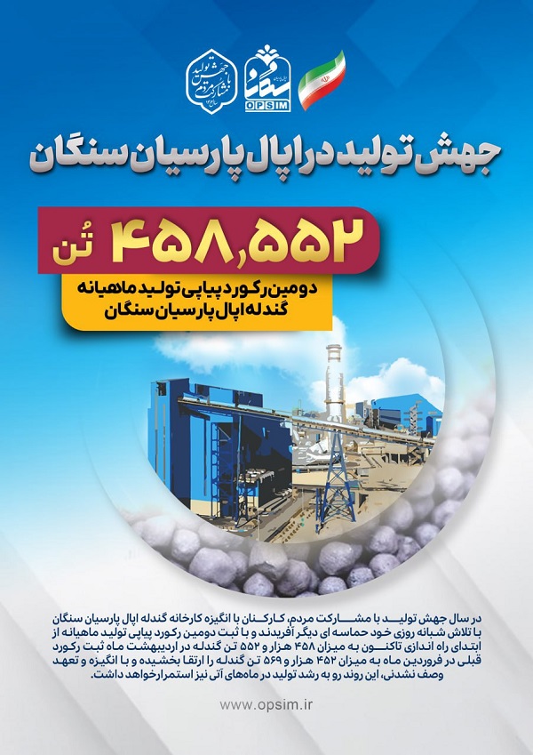 دومین رکورد پیاپی تولید ماهیانه واحد گندلهسازی اپال پارسیان سنگان ثبت شد
