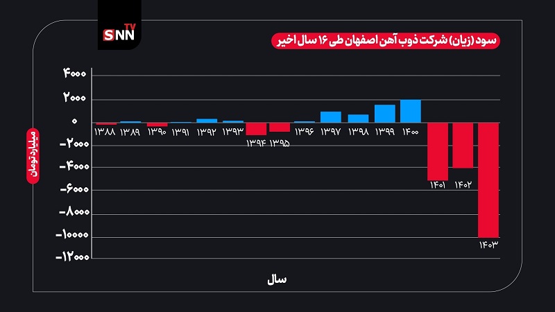 موضوع مورد توجه دیگر این است که پس از سال ۱۴۰۰ که شرکت سود ۲ هزار میلیاردی کسب کرده، به یکباره و در سال بعد زیانی معادل ۵ هزار میلیارد متضرر شده است، یعنی بیش از ۷ هزار میلیارد تومان افت کرده است. این روند همچنان برای سالهای بعد نیز ادامهدار بوده؛ بهطوری که در سال گذشته زیان ذوب آهن به منفی ۱۰ هزار میلیارد تومان رسیده است.