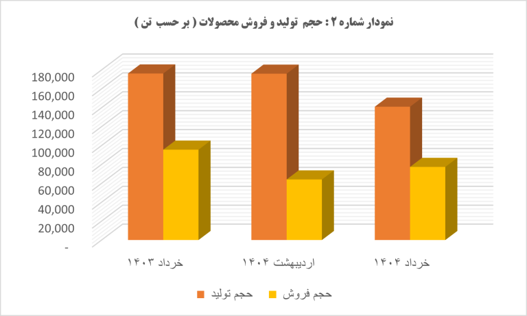 نمودار زیر روند تغییرات حجم تولید و فروش محصولات این شرکت را نشان میدهد.