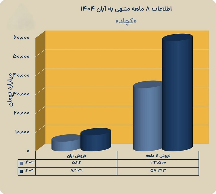 در آبانماه نیز شرکت توانسته 8469 میلیارد تومان فروش ماهانه ثبت کند. بررسی جزئیات عملکرد نشان میدهد که فولاد و کنسانتره آهن (خشک) بیشترین سهم را در ترکیب فروش آبان داشتهاند و همچنان محصولات اصلی سبد درآمدی شرکت به شمار میروند. اهمیت فولاد در ساختار فروش کچاد باعث شده این محصول بهعنوان «لیدر درآمدی» شرکت شناخته شود و وزن ویژهای در عملکرد ماهانه داشته باشد.