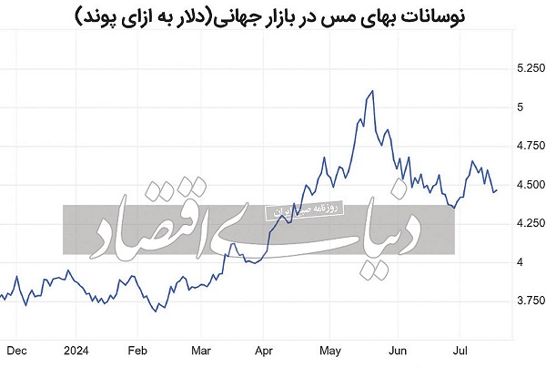 منابع خبری بازار جهانی فلزات، از فرود قیمتی مس در روز گذشته (چهارشنبه ۱۷ ژوئیه)، خبر دادند. بر اساس اطلاعات منتشرشده درباره آخرین وضعیت بازار معاملات فلز سرخ، معاملات آتی مس در روز چهارشنبه (دیروز)، زیر ۴.۴۵ دلار در هر پوند نگه داشته شد و در نزدیکی پایینترین سطح دو هفته اخیر قرار گرفت؛ اگرچه باز هم شاهد رشد قیمتها بودیم.