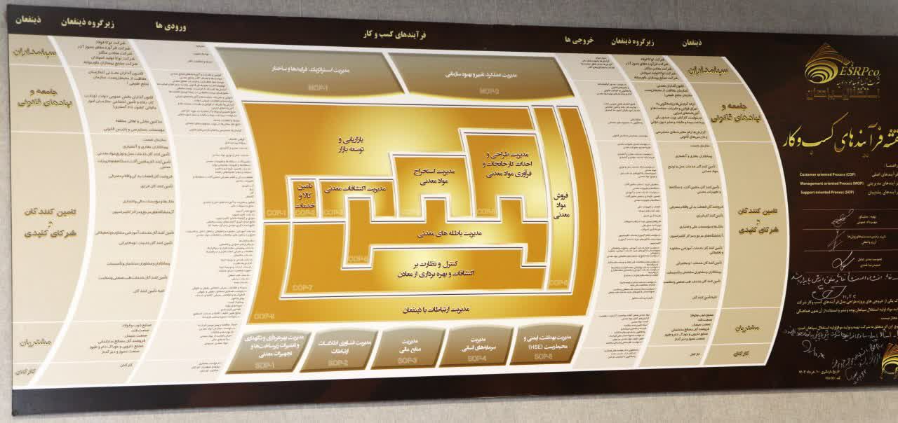 در ادامه، نقشه سطح صفر فرآیندهای کسب وکار و چارچوب طبقهبندی فرآیندهای شرکت و چگونگی ایجاد یکپارچگی بین الزامات سازمان نظام مهندسی معدن ایران، مدل تعالی سازمانی و الزامات استانداردهای مدیریتی با الزامات فرآیندهای کسب و کار در حوزه معادن از طریق فرایندها تشریح شد. این موارد در مراحل طراحی 160 فرآیند شرکت عمیقاً مورد توجه قرار گرفته است.