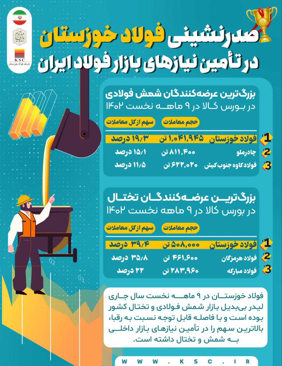 صدرنشینی فولاد خوزستان در تامین نیازهای بازار فولاد ایران