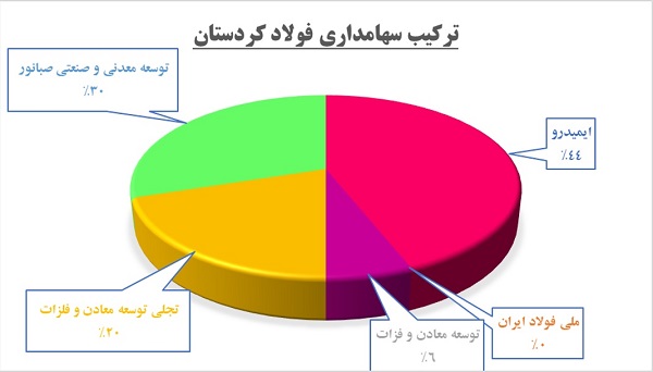 به گزارش پایگاه خبری معدن نامه، اجرای این طرح با مشارکت و همکاری ایمیدرو به نمایندگی از دولت و گروه سرمایه گذاری توسعه معادن و فلزات که سابقه طولانی در اجرای طرحهای معدنی و فولادی دارد، سپرده شد. بدین ترتیب، 44 درصد از سهام شرکت صنایع فولاد کردستان به ایمیدرو رسید و 56 درصد دیگر در اختیار گروه توسعه معادن و فلزات که 30 درصد آن در اختیار توسعه معدنی و صنعتی صبانور و 20 درصد سهام در اختیار تجلی توسعه معادن و فلزات قرار گرفت.