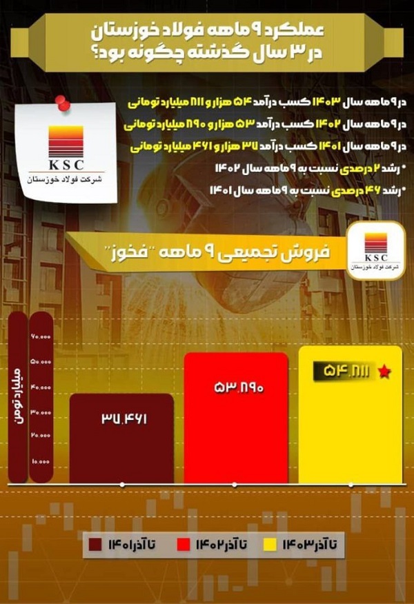شرکت فولاد خوزستان در ۹ ماهه سالهای اخیر عملکرد مالی مثبتی را از خود به نمایش گذاشته است.