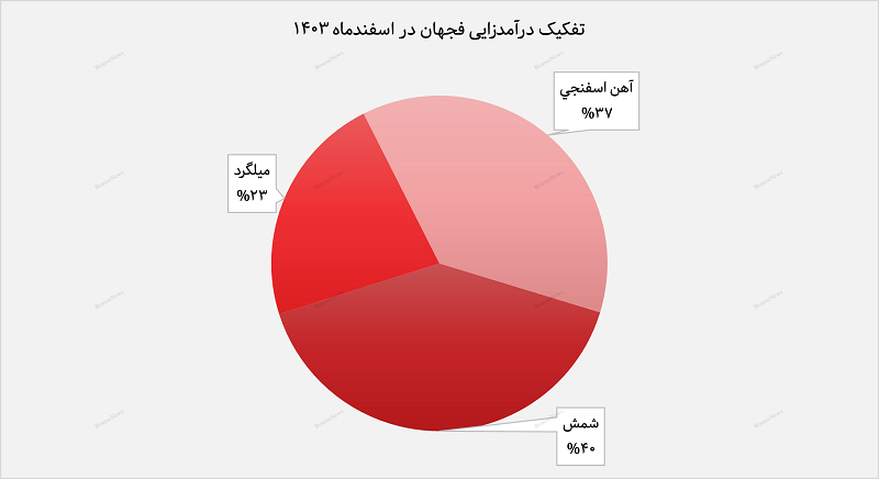 در اسفندماه، شمش با درآمد ۸۳۹ میلیارد تومانی، سهم ۴۰ درصدی از کل درآمد ماهانه را به خود اختصاص داد. نرخ فروش شمش در این ماه به طور متوسط ۲۷ میلیون تومان به ازای هر تن اعلام شد. همچنین، میلگرد با فروش ۷۷۱ میلیارد تومان، دیگر محصول پرفروش این شرکت بود.