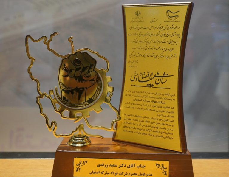 گروه فولاد مبارکه موفق به کسب جایزه نشان ملی اقتصاد مقاومتی کشور شد